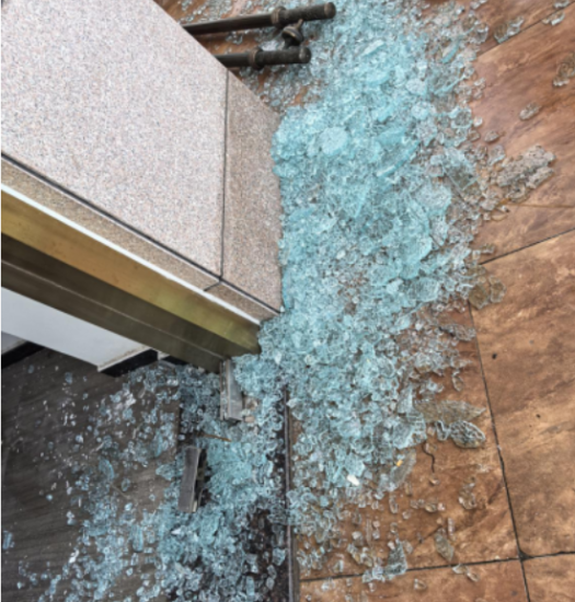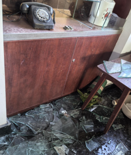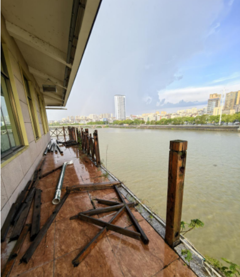 现场满目疮痍:场馆大门的门牌被狂风撕裂、碎裂在地;展厅内展块记录家庭百年历程与民生变迁的展板应声倾覆,部分展板表面的图文资料被雨水浸泡得模糊不清;室外护栏与展厅内的玻璃展框不堪强风冲击,纷纷崩裂,锋利的玻璃碎片散落在藏品陈列区周边;雨水顺着破损的屋顶与门窗涌入,展厅地面迅速形成大面积积水,最深处可达15厘米,直接威胁着架上、柜中的3万余件珍贵藏品——从民国时期的家书、上世纪五六十年代的农具,到改革开放后的老家电,这些承载着普通家庭记忆与国家发展脉络的物件,随时可能因泡水、受潮而损毁。