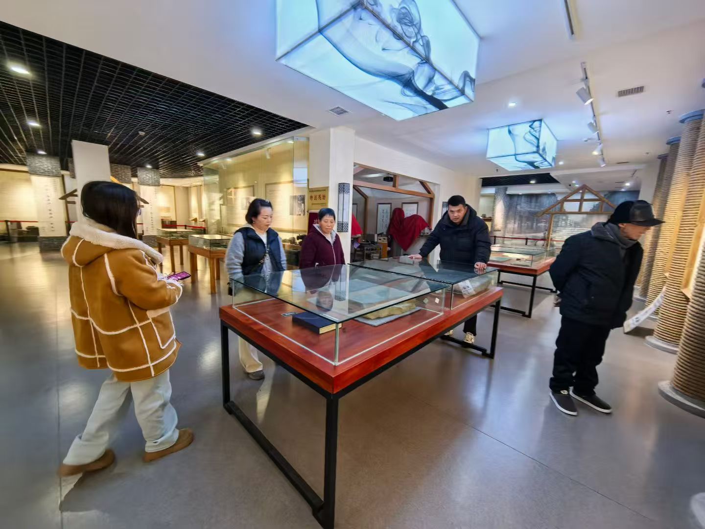 展厅内,织布机、黑白电视、老式背篓等藏品串联起百年民生变迁。王三云一家循着展陈脉络,时而驻足端详充满年代感的衣食用品,时而仔细研究老式农耕工具,深入了解每件藏品背后的家庭故事与时代背景。