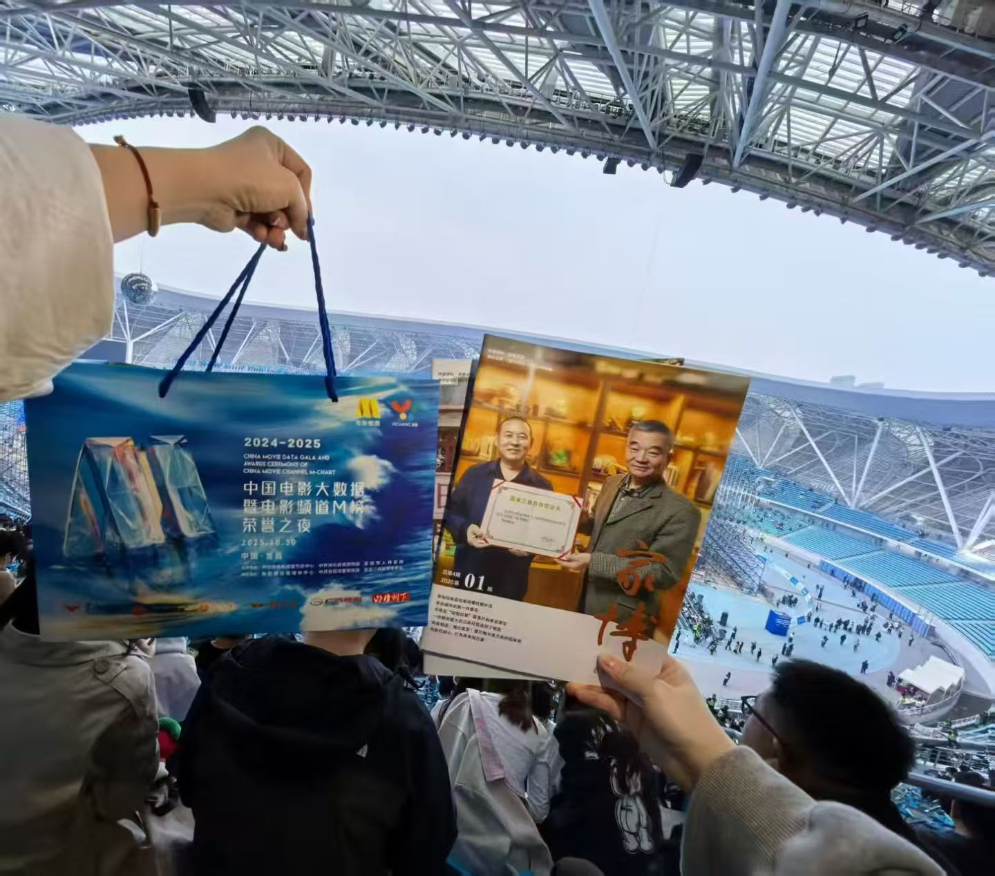 2025年10月30日,2024-2025年度中国电影大数据暨电影频道M榜荣誉之夜与2025长江文化艺术季闭幕式在宜昌奥体中心融合启幕,以“唯见长江 光影绽放”为主题,献礼中国电影诞生120周年。作为宜昌文化名片的裕孝家庭博物馆,由馆长袁裕校带领馆员袁伊轩、张岑岑组成三人团队受邀参会,借这场国家级文化盛宴,向各方宾客与观众生动传递家博文化的独特魅力。