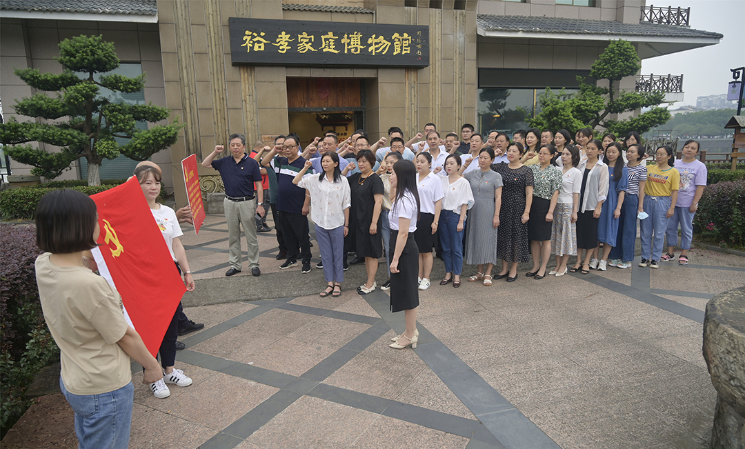 在裕孝家庭博物馆前,全体干部职工重温了入党誓词。随后,干部职工一行参观了博物馆百年民生、薪火相传、家训家风、家博愿景四个主题展厅,馆长袁裕校通过一件件富有历史印记的藏品,讲述了袁家四代人以“苦”字为祖训,艰苦朴素、崇德向善、知礼守义、甘于奉献的良好家风,为大家上了一堂生动的廉政教育课。